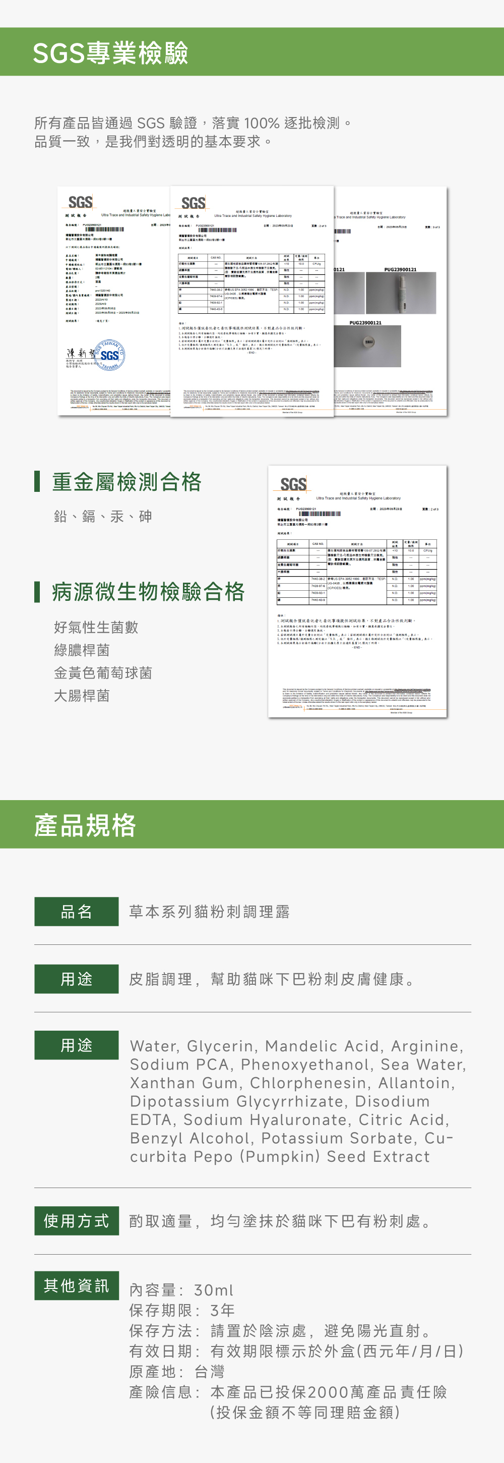 可每天早晚塗抹於下巴有粉刺處,效果更佳;產品無色無味、吸收快、不油膩,貓咪舔到無須擔心!